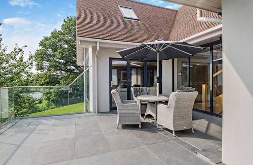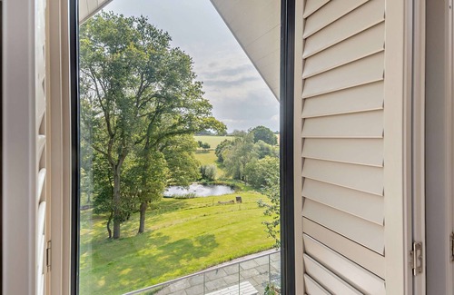 This architecturally impressive residence seamlessly combines modern luxury with comfort, offering a perfect retreat for relaxation and rejuvenation. Inside, you'll find beautifully furnished rooms, including a cosy living area, a contemporary kitchen and cinema room. There are six bedrooms available that are split across all three floors and are designed for restful nights. The main bedroom is found on the lower ground floor and comprises a luxury suite with a sumptuous super-king-size bed, French doors that lead out to the veranda with views over the rolling garden, a dressing area with plenty of storage and a beautiful en-suite with bath and shower. Two further bedrooms are on this floor, one boasting a super-king-size bed with an ensuite bath and shower room and the other, a double-size bed with ensuite shower room. Both have French doors that lead out to the garden. There is also your very own cinema room with a 4K projector, sound system and integrated lighting for the real movie experience. On the ground floor, you are welcomed into a light and bright reception hall with floor-to-ceiling windows that flood the interior with natural light and offer breathtaking views of the surrounding landscape. From here, you can head to the living room that has comfy sofas, a 50-inch Smart television with streaming services and direct access to the glorious sun terrace through the bi-fold doors. The exceptional open-plan kitchen/dining area is every budding chef’s dream. The bespoke kitchen is fully integrated with quality appliances including a triple oven, induction hob, dishwasher, and large fridge freezer. All of this is centred around the extensive breakfast island and large dining table making this a great space to all come together. You can also enjoy your meals alfresco on the south-facing sun terrace. A handy boot room is situated just off the kitchen and hosts laundry facilities and plenty of additional storage including a walk-in pantry. There is also a lovely double-size bedroom on this floor with use of a rainforest shower room. The final two suites are on the upper floor and are accessed via a curved oak staircase to a gallery landing that has dual-aspect floor-to-ceiling windows. The first bedroom is uniquely designed and boasts a super-king size bed with a vaulted ceiling and gable end window, as well as a Velux balcony window where you can enjoy the spectacular views of the garden and fields beyond. You also have a built-in wardrobe and an en-suite shower room. The final bedroom also offers a super-king bed, gable end window with stunning views and an en-suite bath and shower room and separate dressing area upon entrance.