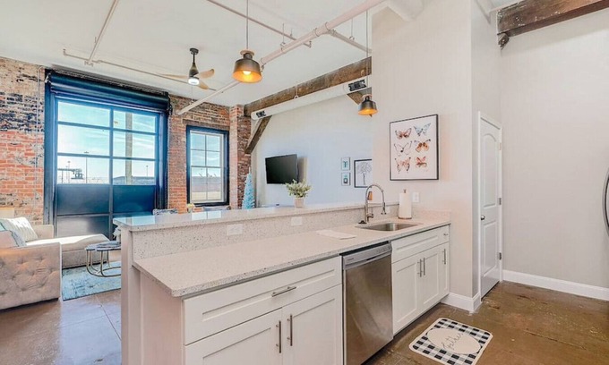 Come stay at Breakfast @ Tiffany's. This beautifully converted warehouse condo is sure to make you stay unique and memorable. All the finishes and furnishings are brand new. Next door you will find a brewery and a distillery. This downtown destination is close to Hampton University and Christopher Newport University. The style and architecture is one of a kind. Decorated to perfection and perfect for social media content!
