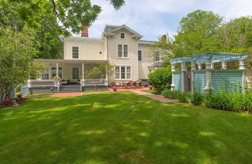 This magnificent home features six spacious bedrooms, each thoughtfully designed to provide comfort and luxury for your guests. The triple-height stained glass entry foyer welcomes you into a home filled with character, highlighted by original chandeliers and sconces in the elegant formal dining room. Enjoy the enclosed sunroom overlooking the newly heated 25x40 pool, which is open seasonally. The expansive park-like grounds are perfect for hosting outdoor receptions or casual gatherings, while the fully stocked kitchen makes preparing meals a breeze with high-end appliances and ample space for entertaining. All the essentials, including luxury linens and plush towels, are provided to ensure a stress-free stay.