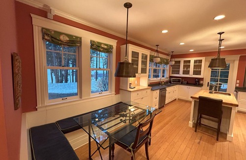 It's actually challenging to describe what this amazing, unique property has to offer. It is incredibly private, situated on 35 acres, yet only 20 minutes to town where you can find museums, great restaurants, and a summer music theater. There are nature trails throughout the property, wildlife, a small swimming pool, the private tennis court ( newly surfaced in 2024 with pickle ball and a halfcourt basketball court), access to the deep water dock, kayaks, paddleboards and a small 12' Hobie catamaran. Not mention the previously mentioned firepit and hot tub. It is truly more of a private vacation resort than a home to rent. The owner's home is privately situated at the end of the peninsula, where you both will only meet if intentional, which is always a welcome thought for them, they truly love sharing this wonderful place.