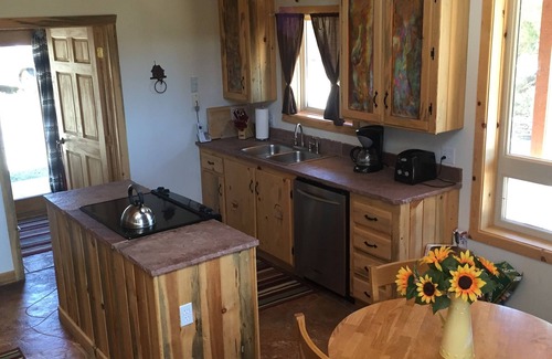 Located not far from Buena Vista’s famous Elephant Rock and Midland Railroad Tunnels, the cabin is conveniently located to state park hiking/biking trails and is only a quarter of a mile away from access to the Arkansas River (for kayak-launching, fishing, and panning for gold). It’s a short drive into downtown Buena Vista, where you can enjoy shopping, amazing food, live entertainment, or fun at the downtown river park.
