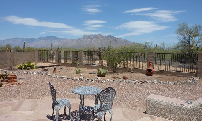 Enjoy the large yard, with patio, hot tub, gas grill and breathtaking views of the Catalina Mountains. Outdoor furniture to enjoy your morning coffee or glass of wine in the evening while watching the city lights and the desert colors.