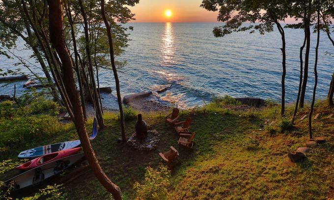 Get ready to be WOWED! Welcome to the most breathtaking lakefront cabin on the coastline of Lake Ontario. This 100-year-old cabin boasts panoramic views of the lake from the top of the bluffs with a rock beach right in front of the house. Spend cozy days inside the cabin overlooking water views from every window, outside at the many common areas, or on the water right in front of the cabin.