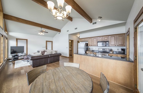 This guest home was custom built in 2006 by the founder and developer of Diamond Bluff. A gated private paved driveway takes you far away from other homes, but close to all of the amenities! Not to mention, the view is so breathtaking that the founder of Diamond Bluff chose THIS LOT to make his home and guest home! From the inside of the house to the outdoor deck, the views are stunning, to say the least! This 1050 sq ft guest home includes 2 bedrooms and one full bath, full kitchen, living room with sleeper sofa, wrap around deck, and a breathtaking view! Sleeps 6.