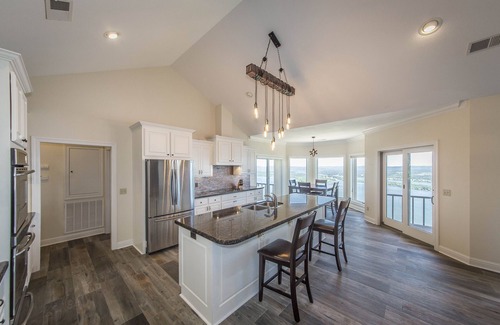 This home was custom built in 2006 by the founder and developer of Diamond Bluff. A gated private paved driveway takes you far away from other homes, but close to all of the amenities! Not to mention, the view is so breathtaking that the founder of Diamond Bluff chose THIS LOT to make his home! From the inside of the house to the outdoor deck, the views are stunning, to say the least! This 3600 sq foot custom home offers 4 bedrooms, 2 full baths and 1 half bath. This property also includes a large den downstairs along with a large living room upstairs. Sleeps 14. More are allowed.