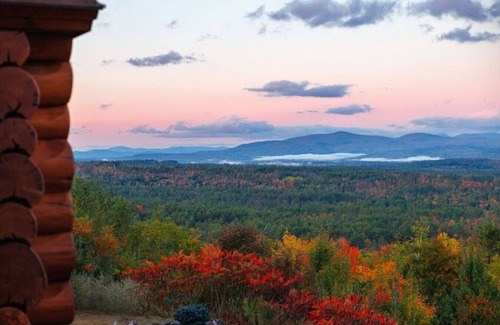 This stunning custom-built log cabin estate is nestled in the mountains, offering breathtaking million dollar views of majestic ranges & the serene waters of Kezar Lake. Watch unforgettable sunsets from your private paradise. This 4,500 sq ft home blends comfort, luxury, & tranquility—perfect for relaxation or adventure. Minutes from Pleasant Mountain ski area, hiking, & Kezar Lake activities, it’s a true escape for families and groups!