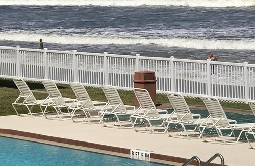 Newly renovated, immaculate, beautifully furnished & decorated, comfortable home away from home, fully equipped unit. Brand new renovated kitchen with granite countertops and stainless appliances, along with every gadget you can imagine including an ice cream maker!.Luxury pool, heated in the winter. Kiddie pool. Plenty of lounge chairs, tables, chairs & umbrellas on the pool deck. You can bring your breakfast, lunch or dinner down to the tables & enjoy by the pool which overlooks the ocean. Private secured entrance directly to white sand beach. Shuffleboard, BBQ grill, covered pavilion & club house with flat screen TV. Enjoy this condominium resort. Sit and watch the ocean from every room. Enjoy 13 miles of pristine white sands of New Smyrna Beach. (No driving section so safe for kids).