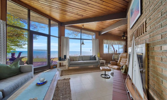 Welcome to our stylish 2-bedroom lakefront cottage, nestled on the shores of Lake Huron. This cozy retreat offers stunning views of the lake and a gorgeous neighborhood beach, perfect for a relaxing getaway. Enjoy breathtaking sunrises from the spacious deck, or unwind in the beautifully decorated interior. The cottage features modern amenities, comfortable furnishings, and an open-concept living area.