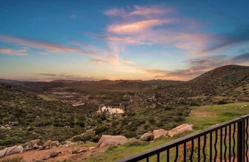 No parties, weddings or extra people allowed! Welcome to your breathtaking retreat! Experience unparalleled panoramic views from this extraordinary estate, majestically positioned high above the picturesque valleys. Upon entering through the private gate, immerse yourself in tranquility across 16 acres of land. The stunning custom home boasts sweeping vistas from both rooms downstairs you'll be staying in, which is a part of 2 level owner’s house. Indulge in the luxury of rose garden, your private theater room providing unforgettable moments and relaxation. Discover the epitome of tranquility and convenience, with this private oasis just a short drive from an array of amenities, including San Diego Safari Park, over dozen of renowned wineries on the same street, shopping, exquisite dining, captivating entertainment, and premier golf. Welcome to your dream estate vacation!