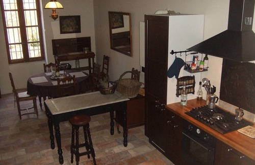Believed to have been an out-building of the castle, the house has been completely renovated with all modern amenities, while retaining a sense of historic charm, including the original foundation stone of the castle, which is visible from the ground-floor living room. It is decorated with antiques from the region.