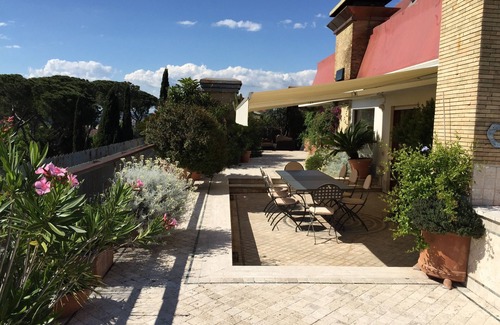 The private floor includes a 600 sq. ft (55 sq.m.) apartment for 2 people and a large 2100 sq ft (200 sq.m.) garden terrace with an unique and magnificent 270° view of Rome.