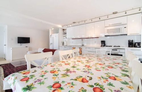 This house is perfect for two families who want to be together but also have some privacy. Each floor is a separate 2 bedroom unit which can be locked or left unlocked so that you have one house. It is designed so that the upstairs has a large living room to hang out in but a smaller kitchen and the downstairs has a large kitchen and dining room so you can all eat together when you would like. Each unit has an incredible view and a large deck. The house is feet from the lake, is very modern, and has a washer/dryer. Each unit has a modern kitchen with dishwasher. We occasionally rent just one of the units by themselves.