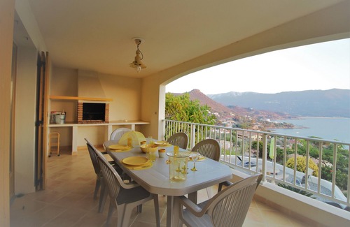 Facing full SOUTH, Residence 'U MELU' is very calm and well maintained. Located in a private cul-de-sac, it offers you calm security and, above all, a splendid view of the Gulf of LISCIA / SAGONE, one of the most beautiful gulfs on the WEST coast. The apartments T2 (1 bedroom) green upstairs and blue garden level and T3 (2 bedrooms) red garden and yellow upstairs are large area; air-conditioned and enjoying a very good insulation, are equipped with all the necessary comforts (washing machine, dishwasher, oven, hob, microwave, toaster, Senseo coffee machine, flat screen cable TV, DVD, internet, wifi, safe, hair dryer, mosquito net and bedding new and quality ..) large terrace with individual barbecue masonry Tastefully decorated and original for each apartment .. Shady parking and small garden for your apé sunset breathtaking! Very beautiful and many beaches all around. Benefiting from a micro climate the sunny region is just as pleasant to discover out of summer season. Enjoy wonderful days in the spring with the scents of the maquis and brooms and its back season with shimmering colors. Remarkable sites to visit.