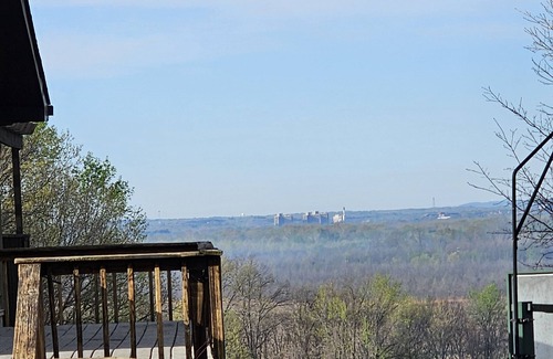 Large cedar cabin with room for the whole family sitting atop the highest lookout point in the area. Large open living area with vaulted cedar ceilings, floor to ceiling windows out to the massive back deck with breathtaking views of the horizon. View overlooks Carbondale and down past Alto Pass to Bald Knob Cross. Relax and watch the sunset on the back deck while sipping on your favorite beverage. 5 acres of privacy with incredible view plus woods to take a stroll. Relax and enjoy the serenity all while having the option for a 2 minute drive to Walkers Bluff Casino/ winery or only 5 minutes to Carbondale Walmart, Kroger, movie theater, dining, etc. Very large master bedroom has his/her walk in closets, double vanity, private toilet room, walk in shower. Has 2nd bedroom on the main floor with its own bathroom and separate 1/2 bath for main floor guests. Downstairs has 2 bedrooms, full bath, play room with bunk beds, pinball, and arcade with fun for the whole family. Back yard has camp fire area with wood provided. Asphalt driveway, 3 car attached garage, plus 2 parking areas by front door and on side of house with room for everyone. This is definitely a rare one of a kind property for Southern Illinois. Pictures will be updated soon, property has undergone complete renovation and all new furniture, looks much better than current pictures on listing.
