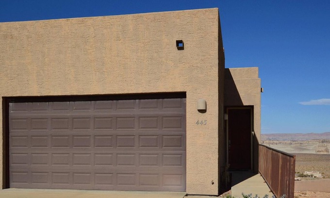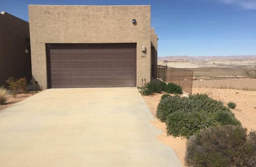 Enjoy this homes outdoor deck, upgraded amenities and all the comforts of home after a day on the lake. Located near both Wahweap and Antelope marinas for your boating convenience. Nearby attractions include world famous Antelope Canyon and Horseshoe Bend. Various hiking adventures are just minutes away. This home is split-level. The top level is living room and kitchen dining room area. There is a deck on the upper level with amazing views. A queen size Murphy bed is also available on the upper level. The lower level is bedrooms with a patio and laundry. Each bedroom has their own bathroom and patio entrance. The beds are King size, and the rooms are beautifully decorated. Basic needs are covered including dishes utensils coffee maker toaster oven laundry Direct TV ironing board and BBQ grill (propane provided).