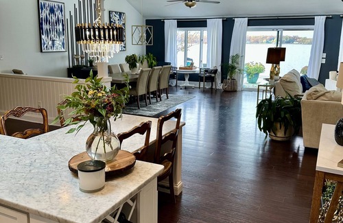 Beautiful, waterfront, 4-BR, Single-level private home with fixed boat dock and floating dock. Bring your boat, jet skis or fishing poles. Enjoy multiple watersports including kayaks that are provided or just relax on the peaceful, large deck that runs across the back of the home.