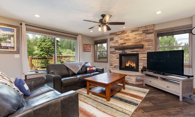 This is the perfect place for your Breckenridge vacation! It is a ski-in/ski-out, two-bedroom, two-bathroom condo that is located directly on the Four O’Clock ski run. This is a first-floor condo with a rare, large patio where you literally walk down the steps, step into your skis or snowboard, and coast down to the Snowflake lift. It’s just as easy to come home for lunch or for après-ski on the patio with the afternoon sun. This condo is also on the end of the complex, which provides for lots of natural light and additional outdoor space.