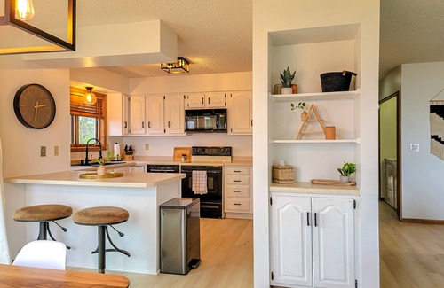Comes furnished with a King bed, fast internet, smart TVs, Keurig coffee and all the cooking essentials. Seamless, self check-in is provided. Keep an eye out for the eagles!