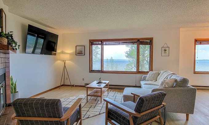 Located on beautiful Lake Bemidji, this cozy SECOND floor 2 BR 2 BA condo is ready for your lakeside getaway! Sunset Horizon Condo 3 is up the stairs and to your right.