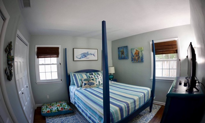 This one story duplex style home has lots of character, is super cheerful, and adorably decorated with beach and mermaid themed artwork throughout. Equipped with Verizon Fios Gigabit Internet so you can stay connected to all of your devices! You will have reserved driveway parking for two cars.