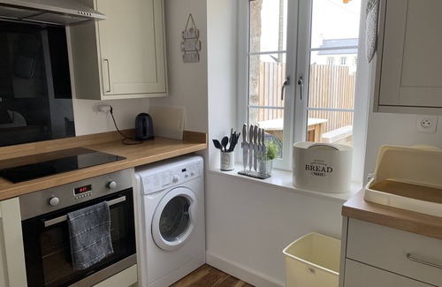 Newly renovated and spacious, this Breton Gite accommodates 4 with ease, the 1st floor has two bedrooms, 1 King double and I twin room, the ground floor has a bathroom, open plan living and dining space with a fully fitted kitchen (fridge, freezer, microwave, dishwasher, washer/dryer) and satellite TV /DVD and Satellite Wi-Fi internet connection should you feel the need to be connected to the outside world. Baby equipment available on request including travel cot with linen high chair and stairgate, pets are welcome with a nightly supplement. Bed linen and towels are provided.
