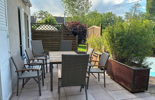 This peaceful accommodation offers a relaxing stay for the whole family, with an outdoor swimming pool, 4 bedrooms, 2 living rooms, 2 bathrooms, 2 toilets, fully equipped kitchen and office including 1 studio adjoining the house. You can relax in the outdoor swimming pool. Wifi and sheets provided. Parking in front of the house. Ideally located 5 minutes from Colmar de Riquewihr, 10 minutes from Kaysersberg and 35 minutes from Strasbourg, Mulhouse and Europa park.
