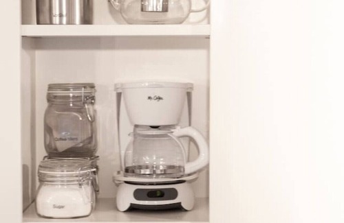 - Whip up your favorite meals in the kitchenette, equipped with a small fridge, microwave, toaster oven, induction cooktop, coffee maker, stainless sink, dishes, and cookware—sharp knives included!