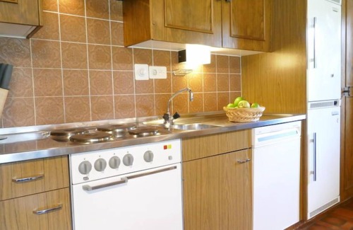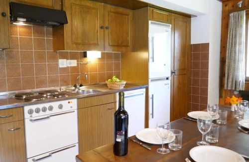 "Breya 2", 3-room apartment 60 m2, on the ground floor. Simple and practical furnishings: living/dining room with cable TV. Exit to the terrace. 1 room with 1 double bed. Exit to the terrace. 1 room with 1 x 2 bunk beds. Kitchenette (4 hot plates, oven, dishwasher, freezer, raclette grill, fondue Set (cheese)). Bathroom, sep. WC. Small terrace, lawn. Terrace furniture, balcony furniture. Beautiful view of the mountains. Facilities: children's high chair for up to 2 year olds, hair dryer. Internet (WiFi, free). Please note: non-smokers only. Maximum 1 pet/ dog allowed.