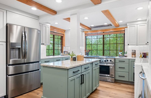 This cabin-style home blends the warmth of natural materials with a sleek modern design, creating a unique and inviting space. Featuring 5 bedrooms and 3 bathrooms, our spacious home accommodates up to 12 guests comfortably.
