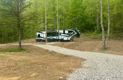 Glamping in a roomy camper enjoying the beautiful nature and woods. Easy trail access to the off road park 1806 Adventures. With a private creek view and fenced in campground.