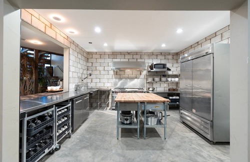 Massive I-beams shimmer in the delicate sparkle of hundreds of crystals from the French Empire chandeliers. Alcoves along sun-drenched atriums, framed by soaring skylights and stately brick columns, invite friends to reconnect and laugh in the rich Old English Chesterfield sofas. From the chef's kitchen above, to the stainless catering kitchen below, the natural stone, oak, and foliage textures all nod to the owner's garden-to-table greenhouse roots. Brick & Beam bestows an extraordinary sense of place that communicates just how much you appreciate your guests form the moment they arrive. It's a space with soul built to gather people with soul.