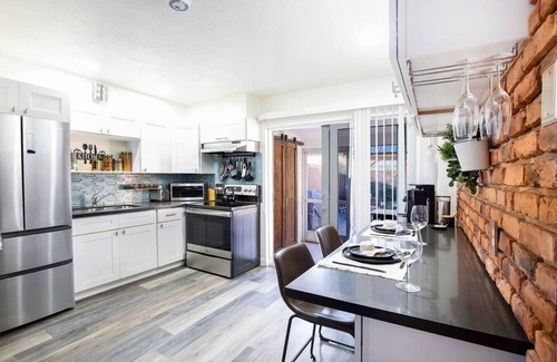 2 parking spots in front of the house, living room, fully equipped kitchen, 2 bedrooms, back fenced patio and backyard