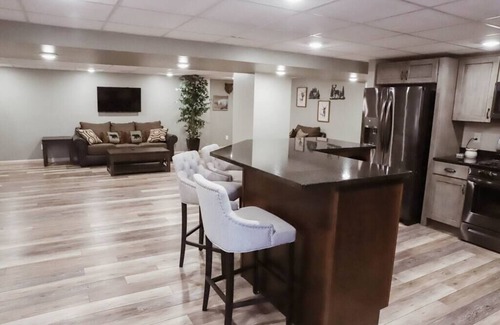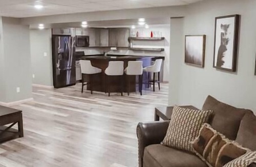 The Brick House is a newly renovated, fully restored, escape from the hectic pressures of city life. Our two-story retreat with a full walkout basement includes a BBQ grill, a patio for entertaining, two full kitchens, a dining room, five bedrooms with five full baths, a movie room, a beautifully appointed farmhouse décor, and so much more.