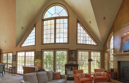 Bright and spacious 3-bedroom lovely home in park-like setting in upscale neighborhood, for rent beginning OCTOBER 1 through summer, 2026. *30-day minimum.* With all the trees and windows, "it's like living in a tree fort!" Home's design was magazine-featured. New wrap-around deck, cathedral living room, YAMAHA piano, extra large yard, large gated pen, special plantings, semi-circle driveway, swing set & large trampoline; tucked away on dead-end street, very convenient to shopping and car/train commuting arteries. OCTOBER 1, 2025 now is first availability. Required: some VRBO history and driver's ID due to duration of stay. Pet may be possible with extra deposit. A no-smoking, no-shoes home. Please first text to describe your needs. Showings available.