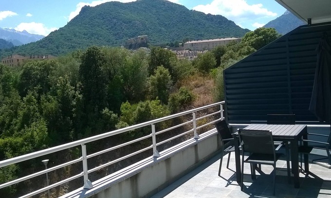 - Maison Kyprea: charmant appartement/duplex , spacieux, tout confort avec terrasse extérieure privée, parking privatif , vue pittoresque sur la citadelle de Corté et les montagnes.