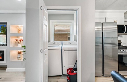 Our place offers a cozy and inviting atmosphere, perfect for short-term rentals. The living room features a beautiful fireplace and a TV, creating a comfortable space for entertaining. Our fully-equipped kitchen comes with all the appliances and utensils you need to prepare meals. Plus, we have a laundry room for your convenience. Located in a peaceful neighborhood, our home ensures a relaxing and enjoyable stay.
