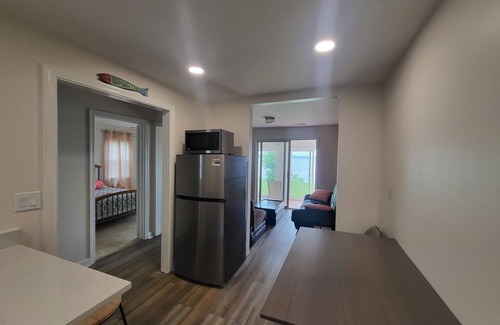 Mermaids Foley has received some upgrades including a full kitchen with full size stove and refrigerator so you can come for a visit at the river and never have to go out to eat. My favorite feature of this home is that there is an enclosed porch on the front and has new sliding glass doors that open to the river so you have an amazing view and the wonderful breeze. Whether you want to open them all and enjoy the summer breeze or you want to watch the rain while being outside and staying dry. We love to watch sunrise and sunset on many occasions since its on a peninsula we often can watch them both.
