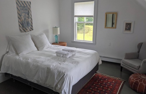 Our 1920's Farmhouse is lovingly restored and is a clean, bright, and comfy space to spend time in. You can gather with family and friends in the downstairs, cook together, read a book, or get cozy with a board game. With ample porch and lawn space, you can also spend a lot of time outdoors enjoying the seasonal splendor of Maine!