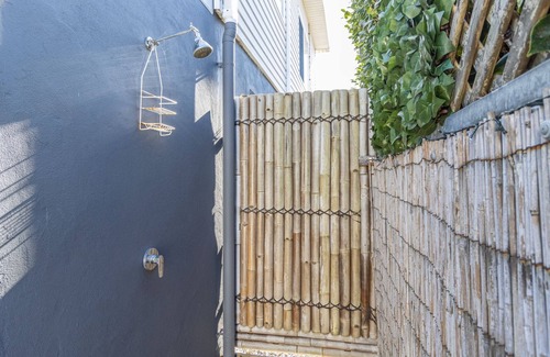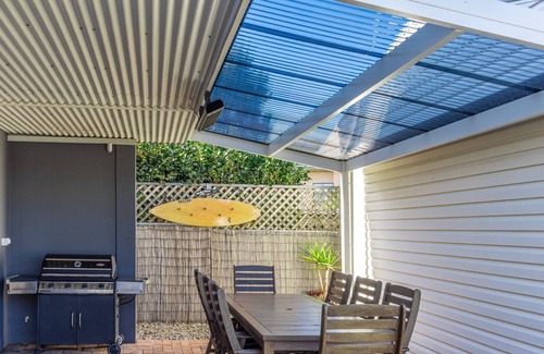 The backyard of this holiday rental is truly a gem, featuring an outdoor dining table where you can gather for meals under the newly built pergola. Additionally, an outdoor shower is available for your convenience, allowing you to rinse off after a day of exploring the nearby beaches. The ample-sized backyard offers plenty of space for recreational activities or simply enjoying the fresh air.