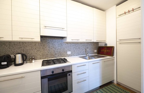 The apartment features a bright and spacious living room with a comfortable double sofa bed, a dining area, AC and access to a separate modern and fully equipped kitchen. The luminous bedroom has a queen size bed, AC and a beautiful walk-in closet from which you can also access the bathroom with shower. This apartment is the perfect solution for your stay in the Eternal City and it has everything you need to feel as comfortable as in your own home.