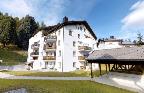 Chesa Prüma, built in 1994, is located on a quiet site in the district called Craschuns on the border of the village centre. Cross-country skiing runs, hiking trails and cycle tracks are in the surrounding area. The post office and the bus station are about 100m away. There are restaurants, bars, shops and a playground in the village centre. Different hotels offer indoor pools, sauna, fitness rooms, and sunny terraces.