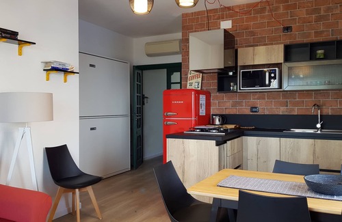 Recently renovated, our apartment is placed just by the beach of Palmasera. It's composed by a big bedroom with king size bed and comfy new mattresses (3rd bed available). A modern bathroom with hairdryer, glass shower stall and towels. Open space kitchen in living room with fold-away bunkbed for the 3rd and 4th person. Outside a sia View private balcony for your summer dinners. Wi-fi, air condizionino and a free-to-use common washer available in the house.