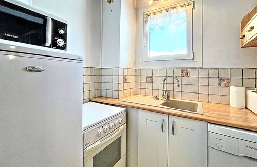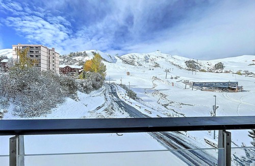 Very bright apartment with balcony, immediate view of the slopes and the snow front, in the heart of the La Toussuire resort. It features a living room equipped with a sofa bed for 2 people, a flat-screen TV, a large closet, and a table that can seat 6 people. The kitchen is equipped with a stove with oven and electric hob, a microwave, an electric coffee maker, a refrigerator with a freezer compartment, a dishwasher, a toaster, and a kettle. The shower room has a heated towel rail and a separate toilet.