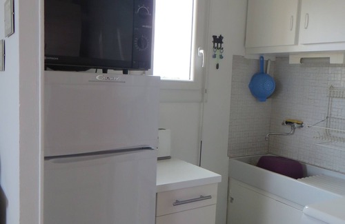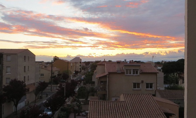 Apartment of 40 m2, very light and airy, located on the 3rd floor without elevator of a building overlooking the sea, facing south (sun from mid-morning), west (stunning sunsets over the mountains Cevennes). The building is located 200m from the beach, 300m from the center and port.