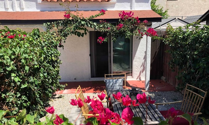 California indoor/outdoor living at it's finest! Step out of your tranquil, airy bedroom onto your private patio and enjoy your morning coffee. After a long day, this 1930's Spanish bungalow will be your oasis. Located at the back of my property, you'll have this 1-bedroom casita and fenced patio all to yourself. The bungalow is equipped with a full kitchen and bathroom, along with a gated parking space. Quiet and peaceful- perfect spot to work from home or staycation!