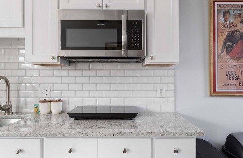 Our brand new sunny guesthouse brings vibrant colors and textures to the walls and creates a fun and inviting space. The decor features cultural references from Spain, Andalucian stairs, a touch of green tropicalia, and Art Deco styles for a fun villa feel. Nearby are the Lily Ponds Aquatic Park, the Metro, and quick access to downtown DC and its iconic landmarks.