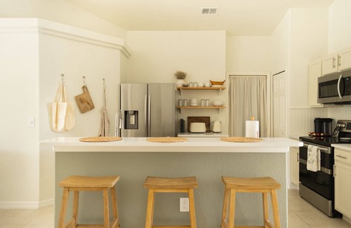 If you're planning a wedding stay at the Bright, Charming Home near Disney with Private HEATED Pool, you will discover an inviting retreat that sets the perfect backdrop for your special occasion. Nestled in a serene neighborhood just 15 minutes from Disney, this property combines comfort and convenience for you and your guests.