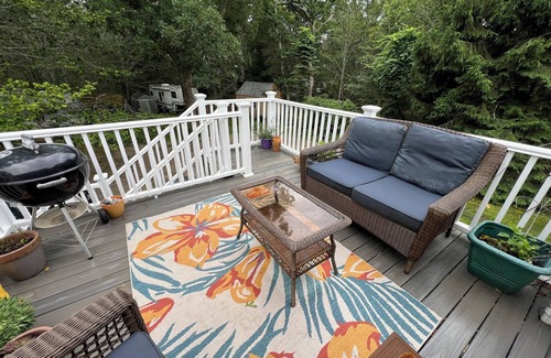 - Quaint home across from bike paths with large furnished deck, grill, & W/D