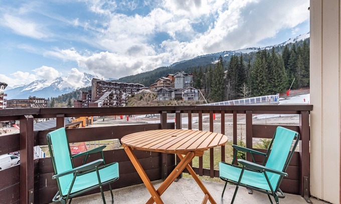 HostnFly offers you this beautiful 39 square meters apartment in Courchevel, featuring a furnished BALCONY with a splendid view of the valley, located on the 1st floor with an ELEVATOR, and ready to accommodate four people.