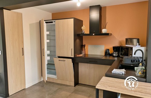 The city of Laval is worth exploring: the historic center, the castle occupied by the Museum of Naïve Art, the Lumières de Laval festival in December, the marina, and all the theater and music festivals. From Andouillé, visit the Small Towns of Character: Sainte Suzanne, Parné sur Roc, Saulges and Saint Pierre sur Erve in particular. Gîte on the same property as the owners' house - It is composed of 2 levels - LEVEL 0 - Accessible to people with reduced mobility (PRM) - Living room 51m²: fitted kitchen area (refrigerator, dishwasher, 3-burner hob, combination microwave oven, filter coffee maker, kettle, toaster), lounge area with sofa and television - Separate toilet - Laundry room with washing machine, freezer - Bedroom (1) 16m² with 1 bed 140*190, storage, television, desk - 1 bathroom accessible to people with reduced mobility: sink without vanity unit, walk-in shower with bar and seat, toilet with bar, electric towel dryer